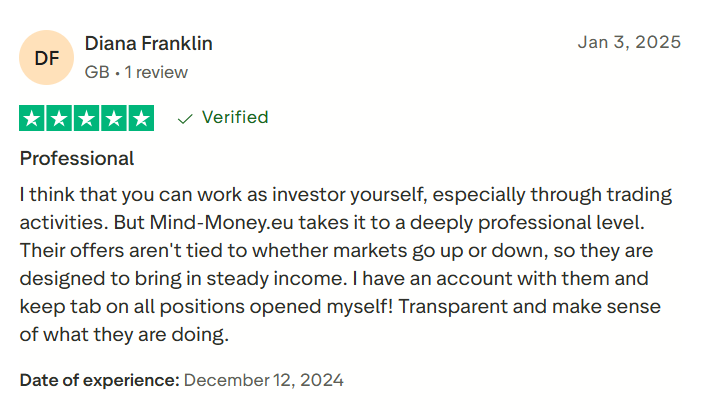 Mind Money позиционируется как платформа, где инвестиции перестают быть хаотичными и превращаются в управляемый процесс. Компания работает в рамках европейских правил, предлагает системную инфраструктуру и заслужила доверие инвесторов благодаря прозрачности и деловому стилю работы.